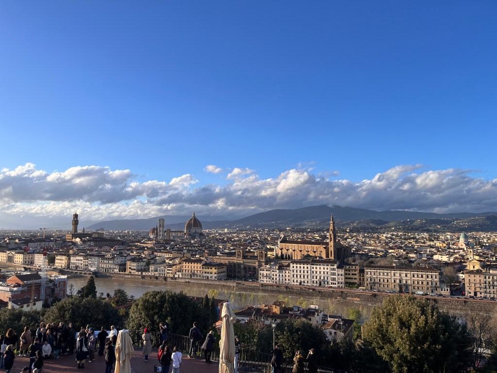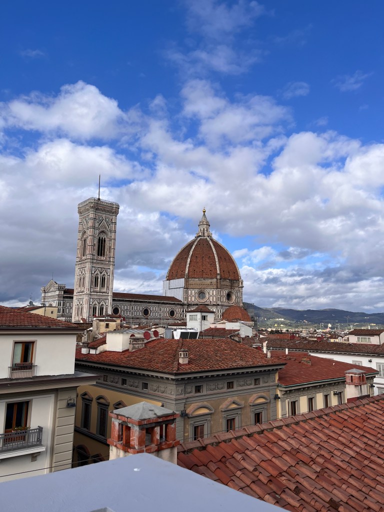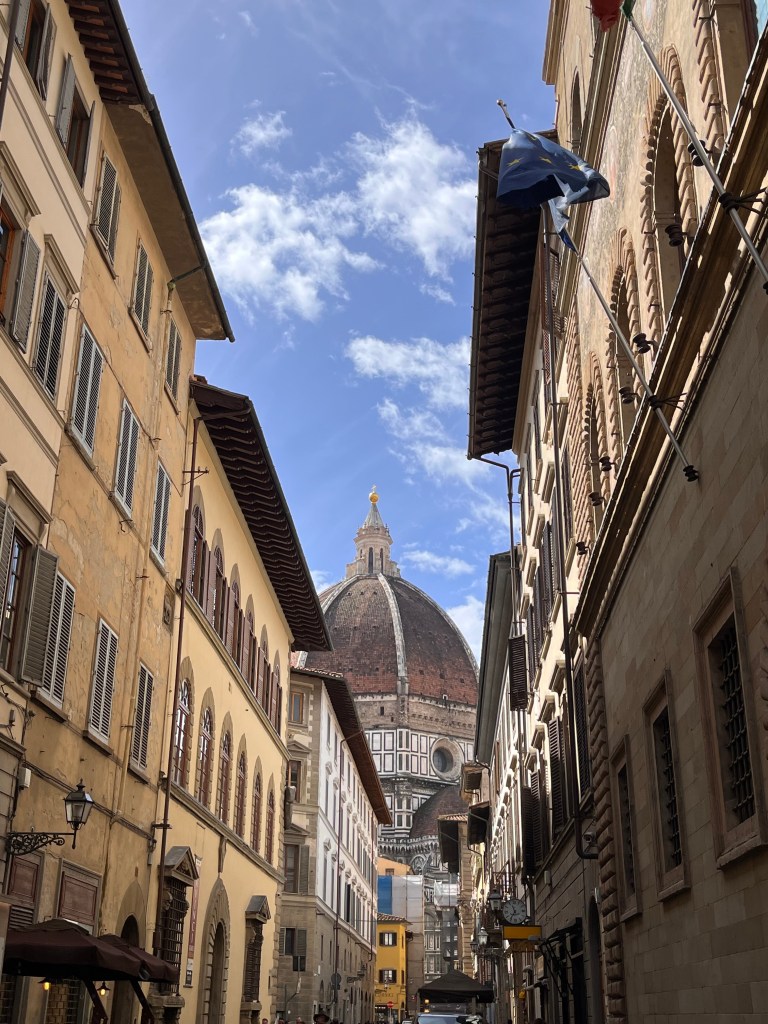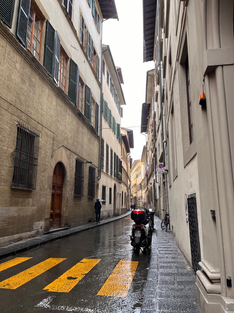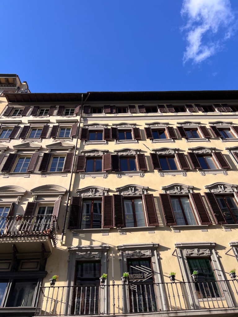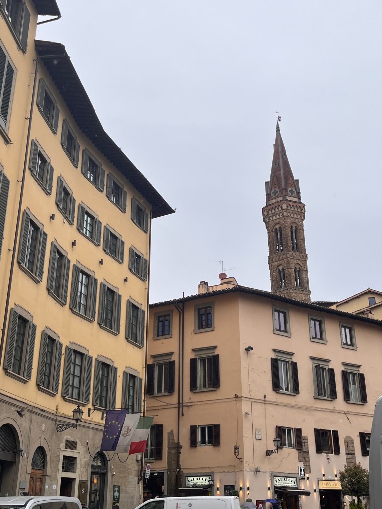 Après ça, nous nous sommes dirigé vers le Ponte Vecchio*, et le Borgo San Jacopo, une rue emblématique de la ville, situé de l’autre côté de l’Arno comme le nom du quartier l’indique « Oltrarno ». Borgo San Jacopo conserve encore aujourd’hui son atmosphère médiévale avec ses tours nobles du XIIIe et XIVe siècle. À l’époque, ces tours étaient des symboles de pouvoir pour les familles florentines influentes, comme les Marsili et les Barbadori. Plusieurs d’entre elles sont encore visibles, comme la Torre dei Belfredelli et la Torre dei Barbadori. Historiquement, Borgo San Jacopo était un centre de l’artisanat florentin, notamment pour la joaillerie et la fabrication d’objets en cuir. C’est aussi juste très mignon et agréable de s’y promener!!