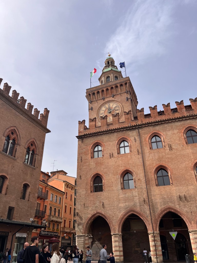 Ensuite, on s’est perdus sous les portiques emblématiques de la ville. Ils sont partout (près de 40 km en tout !), et franchement, ça donne à Bologne une ambiance unique et hyper agréable pour se balader (et éviter le soleil ou la pluie. On a aussi exploré le Palazzo Comunale (gratuit!) , un superbe bâtiment avec des salles pleines d’histoire et une vue canon sur la Piazza Maggiore. On a terminé la journée par un bref aperçu de la Bibliothèque Salaborsa.
