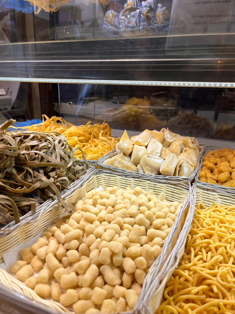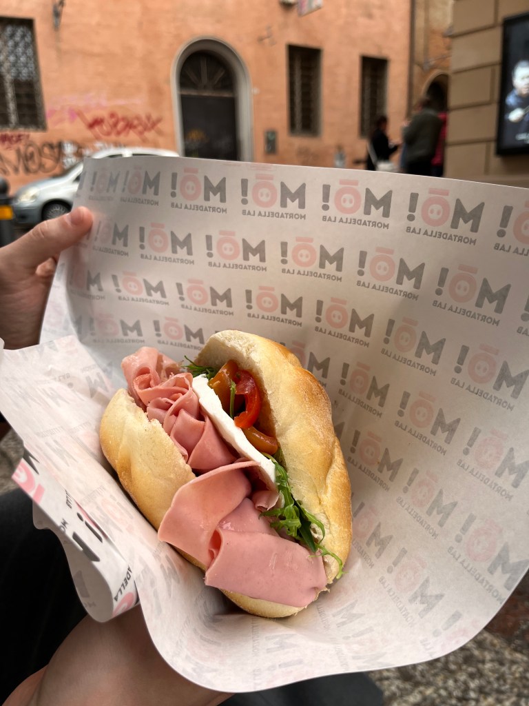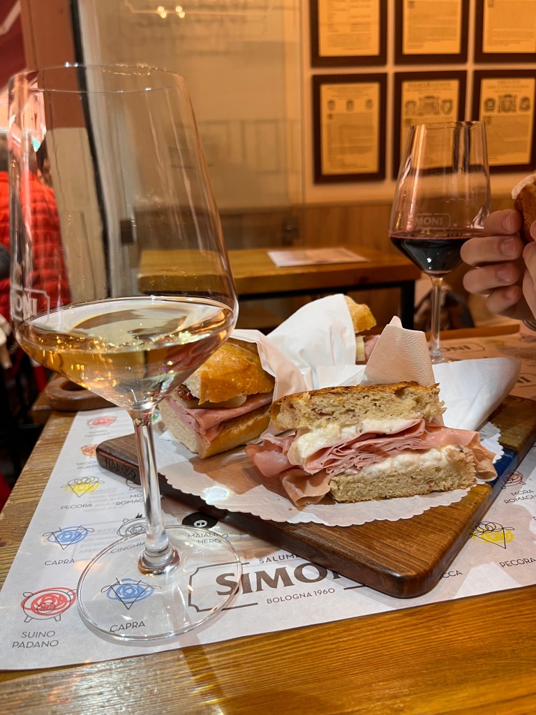 Après ça, place à l’essentiel : manger. 😏 Direction le Mercato di Mezzo, un marché couvert où on a goûté des spécialités locales juste incroyables. Des tortellini al brodo, une mortadelle fondante, un verre de Lambrusco… Bref, Bologne est clairement la capitale du bien-manger !