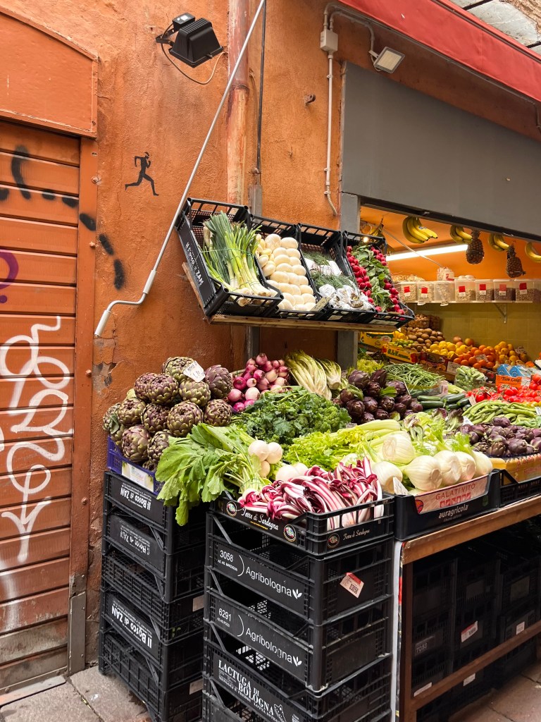 Redescendre à pied, c’était déjà plus chill. De retour en ville, on a traversé la Via del Pratello, une rue animée, remplie de petits bars et de street art, parfaite pour sentir l’âme alternative de Bologne. Puis, pause food au Mercato delle Erbe, un marché couvert où tu trouves des produits frais, des petites trattorias et des bonnes vibes.