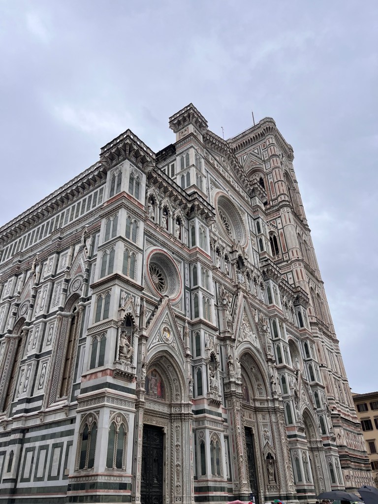 Nous avons commencer la visite de la ville par une visite du Duomo, la Cathédrale Santa Maria del Fiore. Elle a donner le ton : une file immense, qui nous a fait attendre 2h avant d’entrer dans la cathédrale. Elle est magnifique à l’extérieur! Un peu décevante à l’intérieur, mais elle vaut quand même le détour et peut-être pas le prix. Bref!