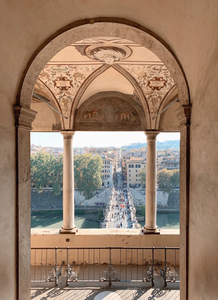 Retournez ensuite vers le quartier qui borde le Vatican, le quartier Prati : On y trouve le Chateau Saint-Ange (fermé le lundi et ouvert de 9h à 19h30). Je le conseille vraiment, surtout pour découvrir d’avantage de l’histoire de Rome mais surtout sa terrasse offre un super panorama. Du coup, je recommande d’y aller en fin de journée pour le sunset. Nous nous sommes également arrêtés dans son petit parc très agréable.