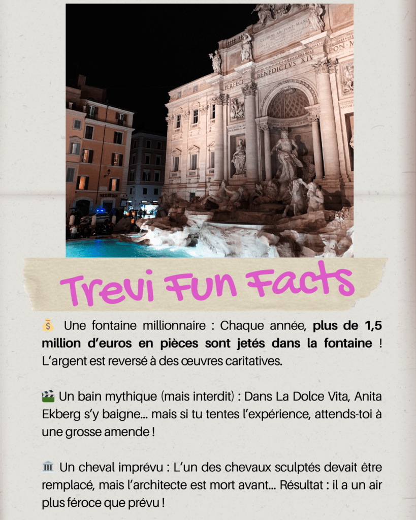 Après ça, allons jeter un oeil à la fontaine de Trevi ! Attention le monde. 💀 En réalité nous y sommes déjà passé plusieurs fois, vu sa position centrale.
