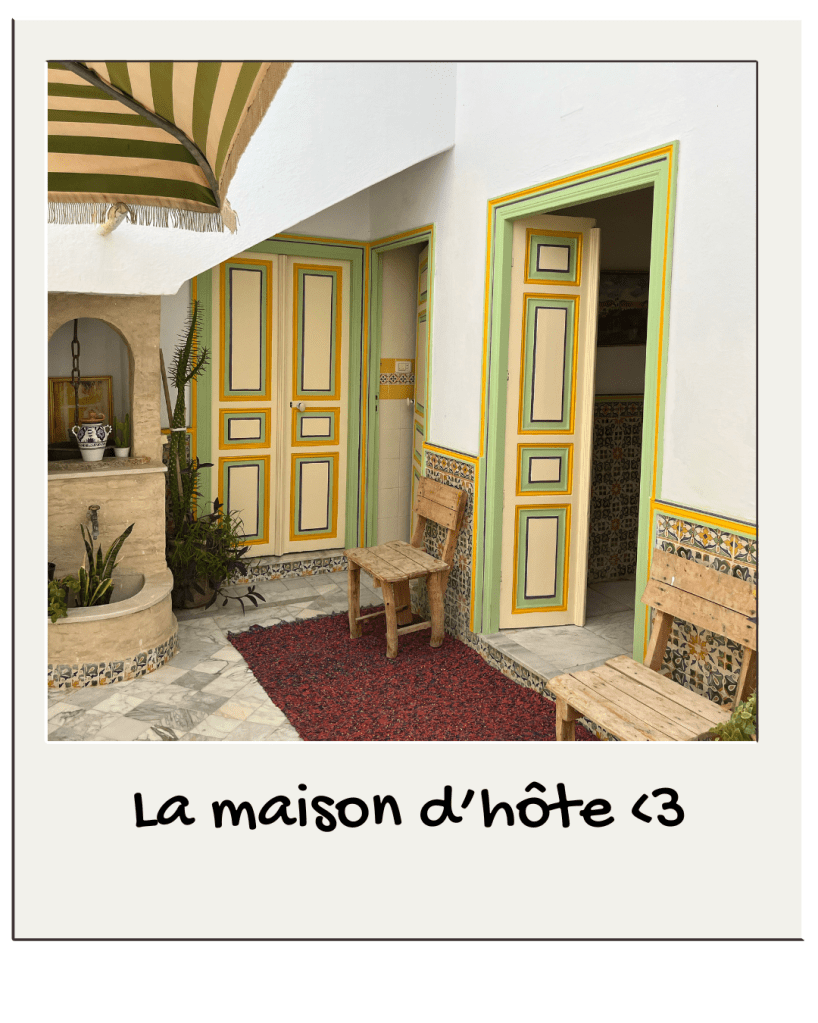 Nous avons loger dans une maison traditionnelle arabe, où les repas du matin et soir étaient proposés. Un must pour avoir l’expérience Kairouanaise complète. Je vous recomamnde néamoins 1 café et un resto : Chez Mamie et Dar Lella Habiba 💙