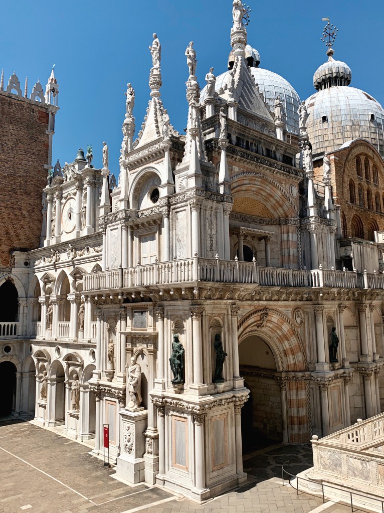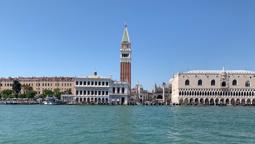 Commençons cette grosse journée avec le coeur touristique de Venise, San Marco, comportant les plus beaux bâtiments qui ne vous laisseront certainement pas indifférents. D’abord, nous nous arrêtons sur la place San Marc ou « Le plus élégant salon d’Europe » d’après Napoléon. Ici, trônent fièrement la tour de l’Horloge, la Basilique San Marc d’un style d’inspiration byzantine et le célèbre campanile surplombant la ville. Ces deux derniers monuments sont à visiter absolument, tout comme le Palais des Doges, situé juste à droite de la basilique. Centre politique historique, ancienne prison célèbre et aujourd’hui musée, il est intéressant pour les oeuvres majeures de Tintoretto comme « Le paradis » et ses magnifiques salles. Une fois ces visites terminées, nous continuons notre balade sur la Riva dei Schiavoni, où nous retrouvons les Jardins royaux et le Ponte della Paglia.