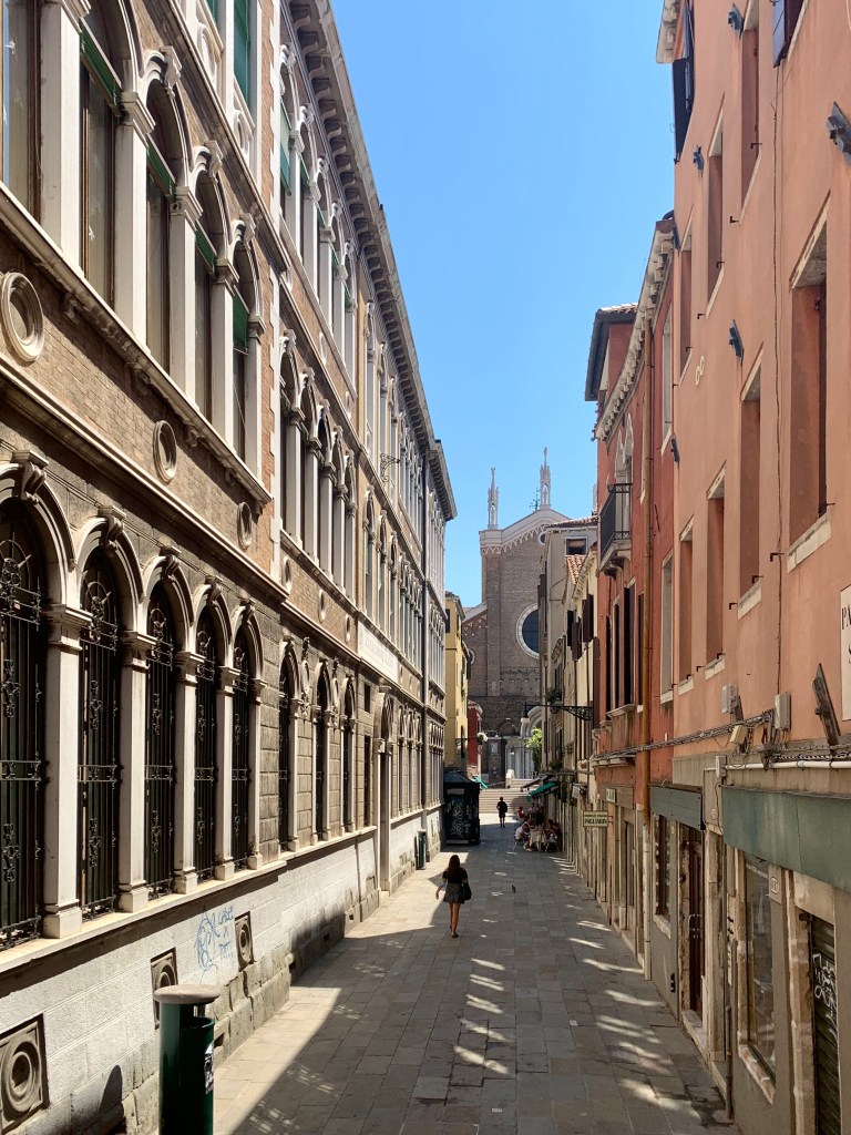 Ensuite, dirigeons- nous vers le quartier du Castello, en commençant par la visite de la Basilique San Zaccaria immanquable pour sa crypte datant du Xe siècle (tickets sur place). En passant par l’Eglise grecque orthodoxe et traversant les rues du Castello, nous arrivons à l‘Arsenal de Venise (aujourd’hui galerie d’art à visiter pendant la période de la Biennale), qui permit à la République de Venise de devenir une puissance maritime grâce à une méthode innovante pour l’époque : le travail à la chaîne et une main d’oeuvre en grand nombre. Nous finirons la visite du Castello par la Via et la Viale Giuseppe Garibaldi, dont l’urbanisme dénote avec les reste de Venise: artère la plus large de Venise créée en comblant le canal du Castello à la demande de Napoléon, qui voulait doter la ville de lieux de promenades publiques. C’est un quartier également très chouette, avec des petits bars et des petits cafés sympas.